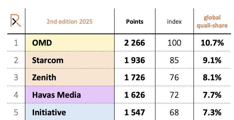 The RECMA Network Diagnostics Report marks the latest in a streak of accolades for OMD in 2025, including earning Media Network of the Year honors at Cannes for the second consecutive year; and being named Media Agency of the Year in multiple markets, including the US, UK, Canada, Hong Kong, the Netherlands, Spain, and Sweden.